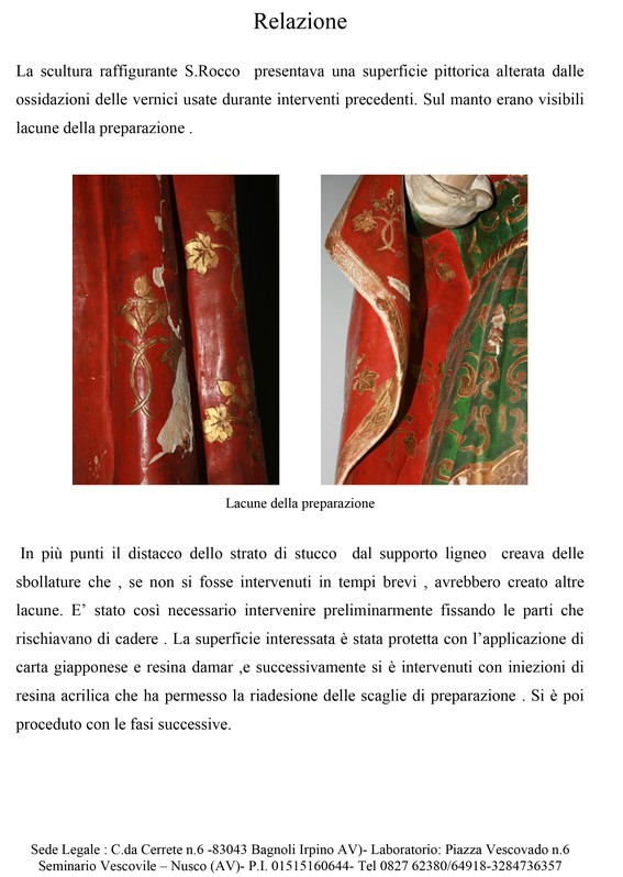 Relazione tecnica sul restauro della Scultura in legno policromo raffigurante "San Rocco"